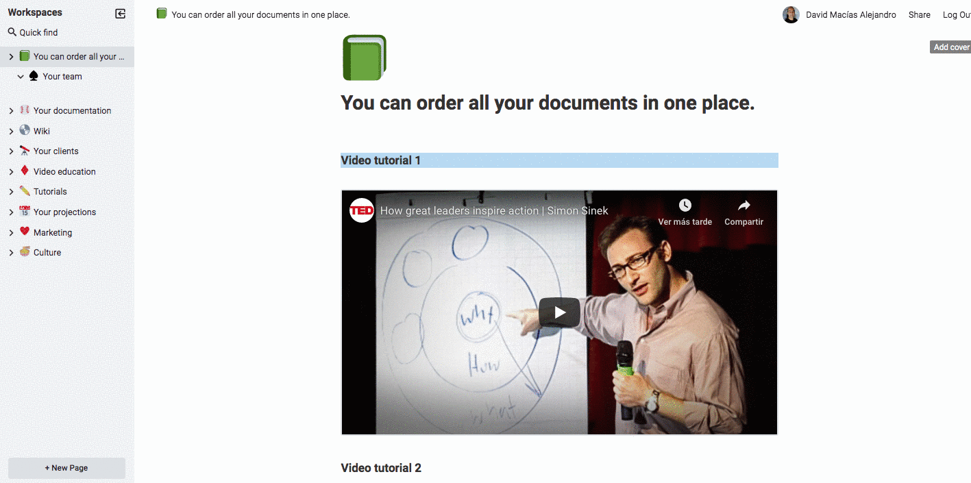 Un Docs vitaminado donde puedes unificar todas las herramientas que usas (PDF, videos, embed, textos, Docs, Excel, formularios, etc.) en solo una herramienta.